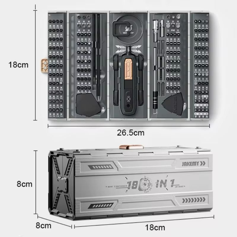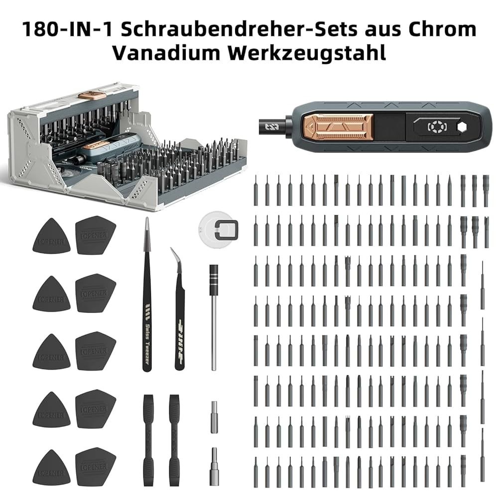 این مجموعه شامل ۱۸۰ قطعه ضروری است و ابزاری ایدهآل برای تعمیر انواع دستگاههای الکترونیکی و دقیق محسوب میشود.