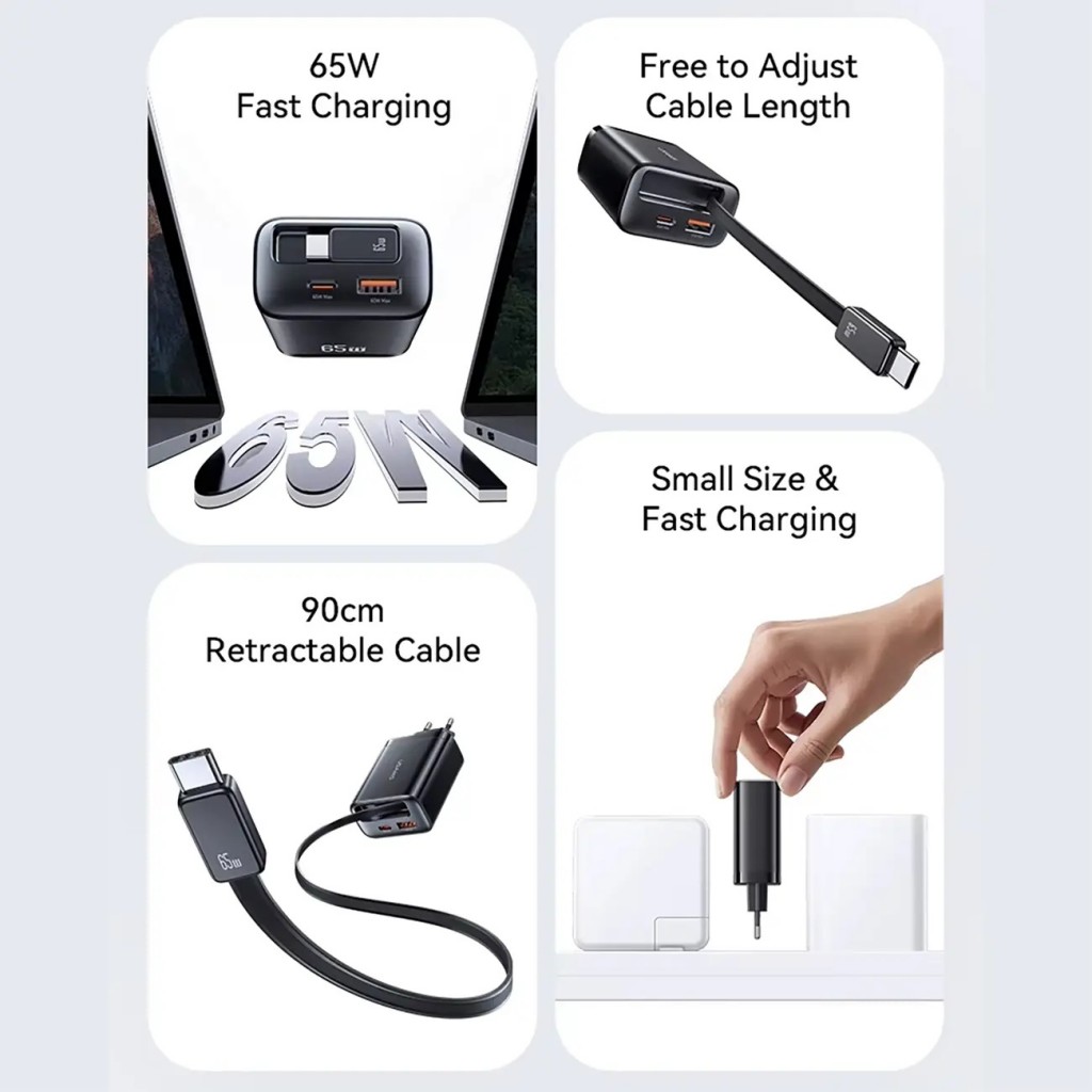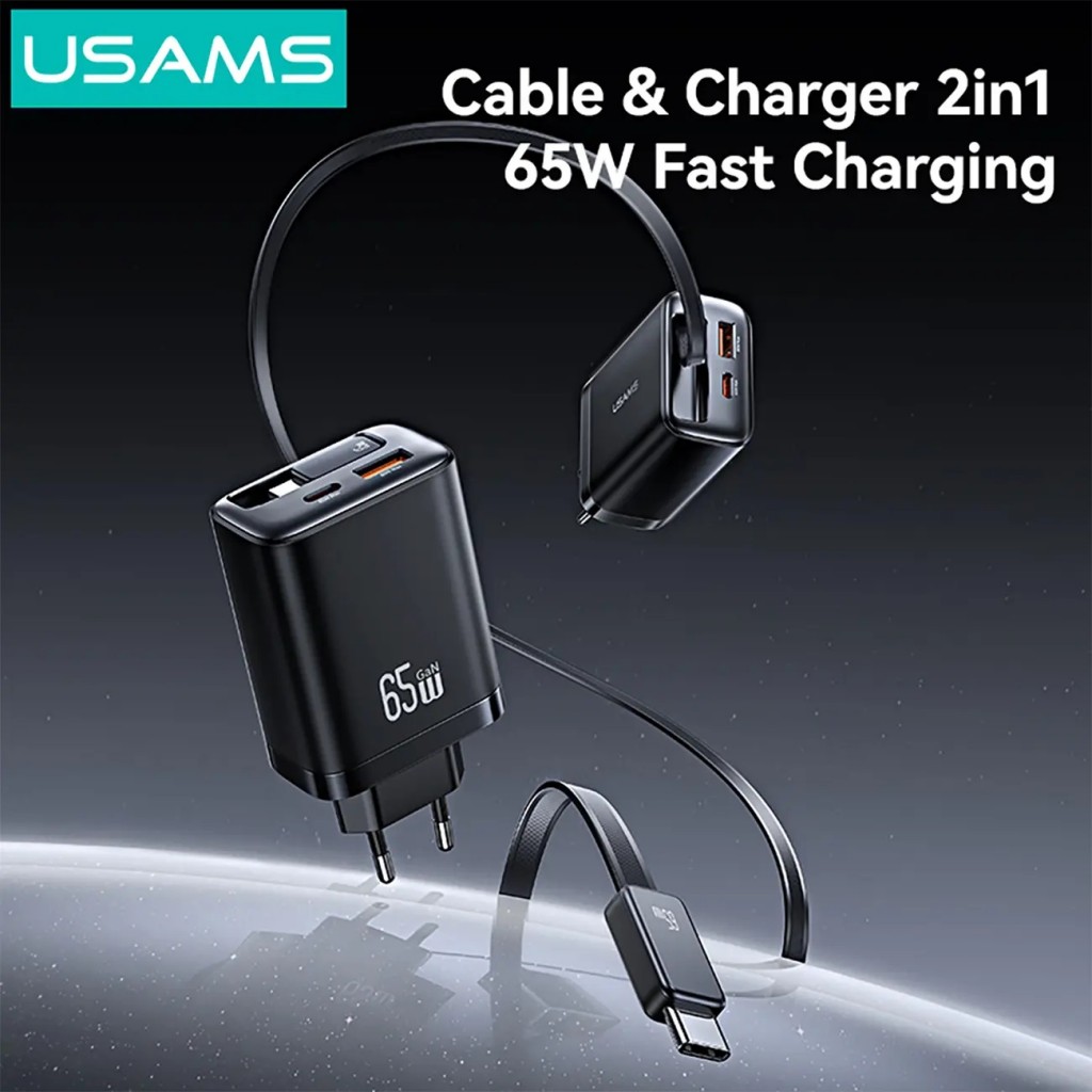 - شارژر دیواری USAMS CC299 با توان 65W، مجهز به تراشه GaN برای ابعاد کوچکتر و بازدهی بالاتر.