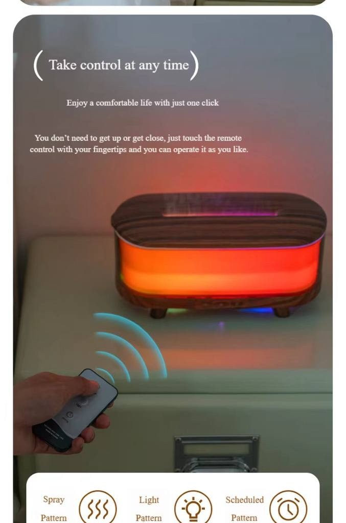 - کنترل از راه دور: این محصول دارای ریموت کنترل است که امکان تنظیم تایمر، کنترل بخور، و تنظیم روشنایی را از راه دور فراهم میکند.