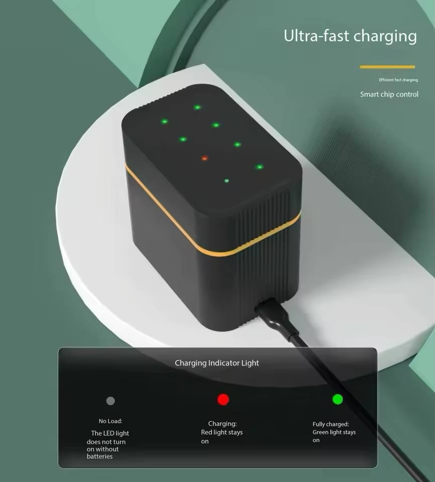 - اسلاتهای شارژ چندمنظوره و مستقل: دارای هشت اسلات مستقل است که به شما این امکان را میدهد تا به طور همزمان حداکثر چهار باتری قلمی (AA) و چهار باتری نیم قلمی (AAA) را شارژ کنید.