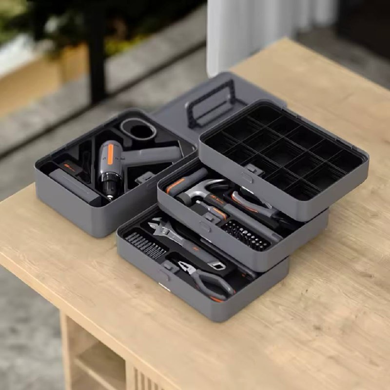 این مجموعه کامل، تمامی ابزارهای ضروری برای پروژههای خانگی، اندازهگیری، برش و ساختوساز را در قالب یک بستهبندی مرتب و قابل حمل ارائه میدهد. کیت JIMIHOME ترکیبی هوشمندانه از ابزارهای دستی و برقی است که برای کاربران حرفهای و خانگی طراحی شده است.