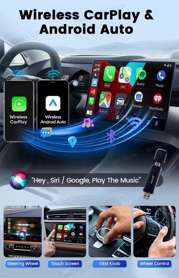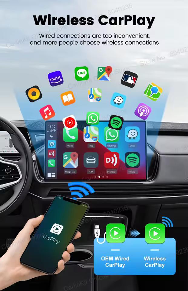 - مبدل CarPlay و Android Auto سیمی به بیسیم