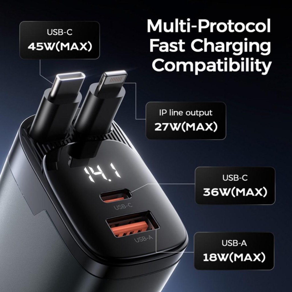 - دارای ۲ کابل داخلی جمعشونده (Lightning و Type-C)